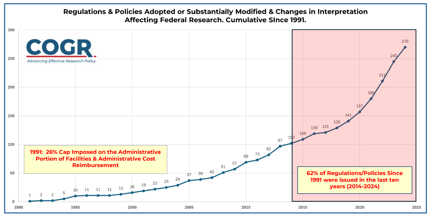I don’t need to tell you that the bureaucracy involved in securing federal funding and complying with regulations hampers science. In addition to being slow, the federal science enterprise is very big — so big that a report of 53 options for improving science processes only scratches the surface of what needs to be done. In 2025, the National Academies presented that menu in their Simplifying Research Regulations and Policies: Optimizing American Science, selecting options for their likely impact, and taking into consideration the Trump administration’s interest in reducing regulation.