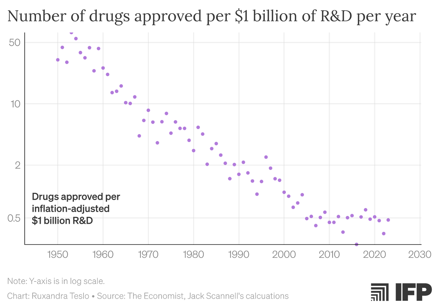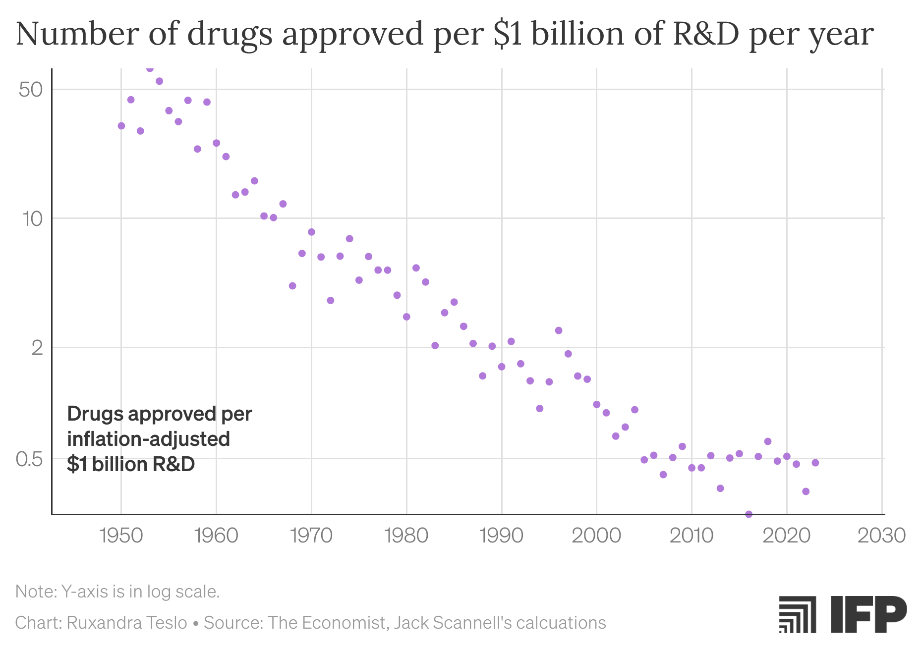 Note from Andrew: This week’s piece fromRuxandra Teslo and Jack Scannell helped me understand the barriers to having more and better drugs. Ruxandra is a fellow at Renaissance Philanthropy where she studies how to improve clinical development. Jack is CEO of Etheros Pharmaceuticals Corp.