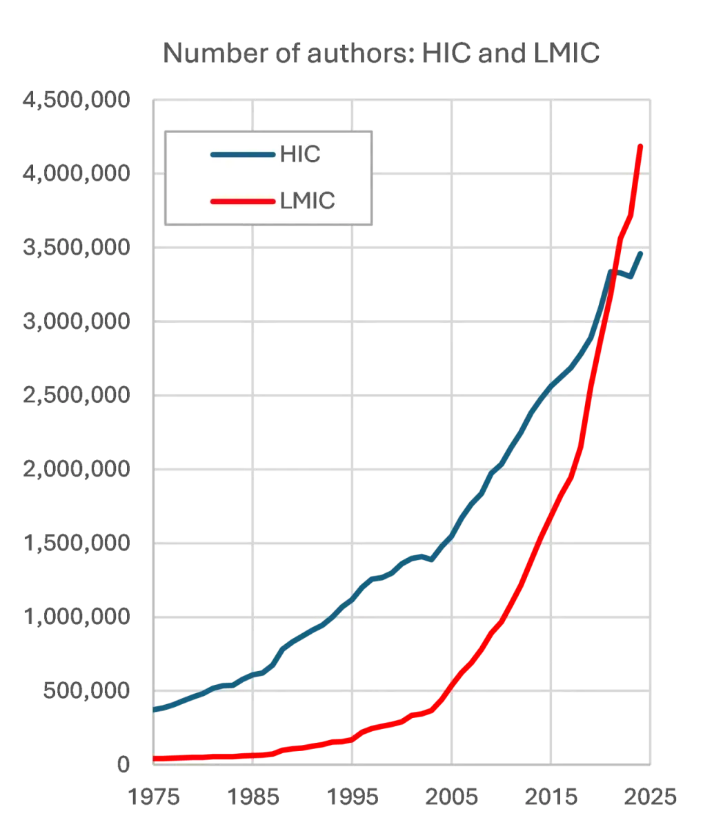 Brito Cruz points out a blindspot in the debate on whether the US or China is the most scientifically advanced country: in the meanwhile, low and middle income countries (LMICs) have been building their scientific capabilities. For the first time ever, the majority of authors in the SCOPUS Abstract and Citation database are from LMICs. In my view, this piece is a story about (1) China, of course (still technically middle income), but also (2) developing countries investing in science, and (3) technology — from Zoom calls with co-authors to Google Translate — making it easier than ever for LMIC researchers to publish.